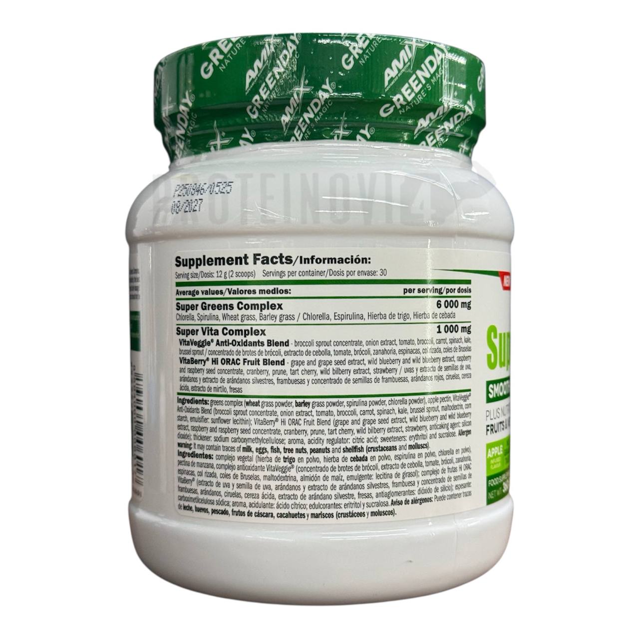 Суперфуд Amix Green Day Super Greens 360g – це харчова добавка для приготування смачного розкішного зеленого коктейлю, повного енергії і антиоксидантів. Він містить Greens Complex, VitaVeggie® та VitaBerry® для контролю ваги та здоров’я травної системи.