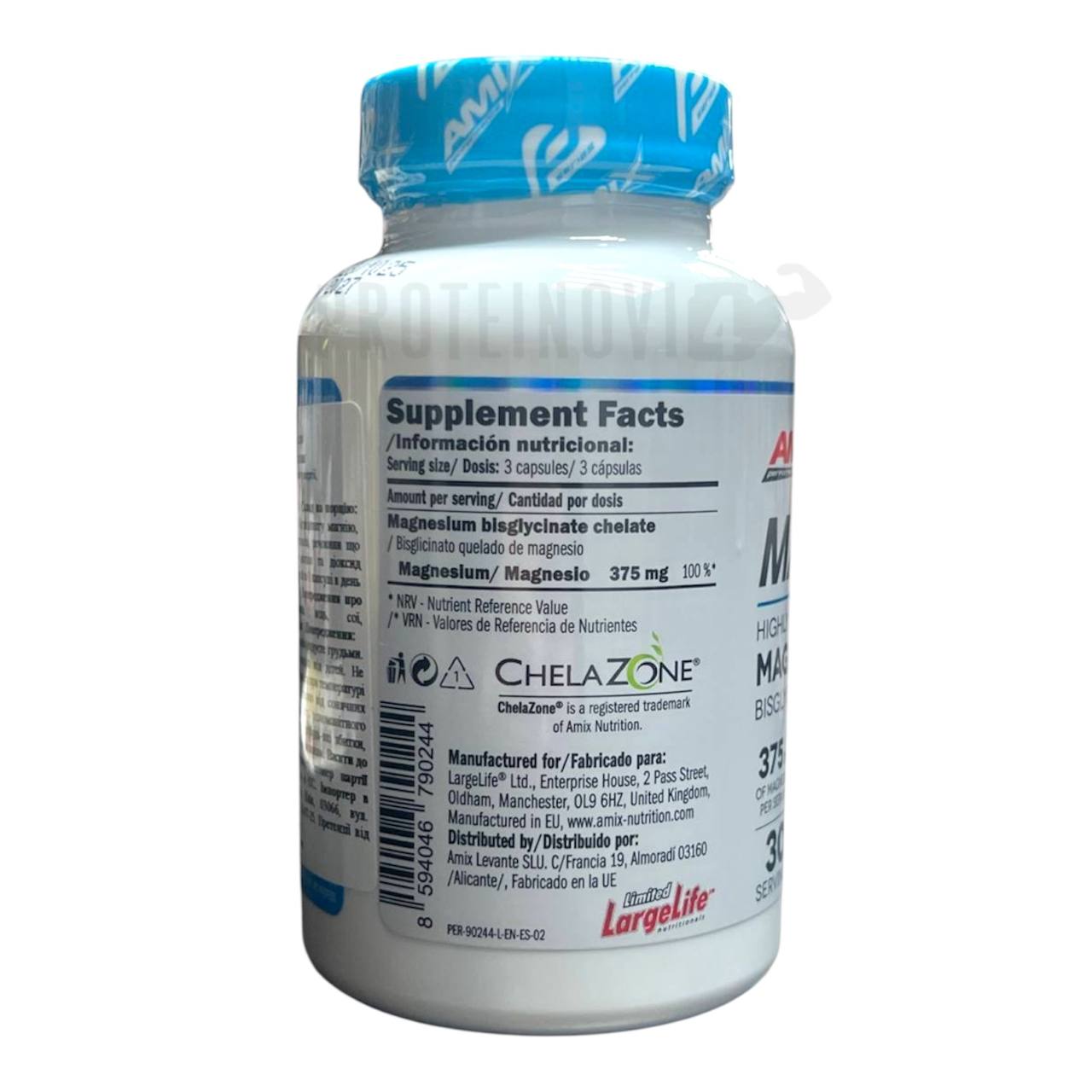 Amix Magnechel magnesium bisglycinat chelat 375mg 90veg caps – це харчова добавка, що містить 100% бисгліцинат хелат магнію (ChelaZone®) в рослинних капсулах. Ця форма магнію надзвичайно легко й швидко засвоюється організмом, забезпечуючи максимальну ефективність.