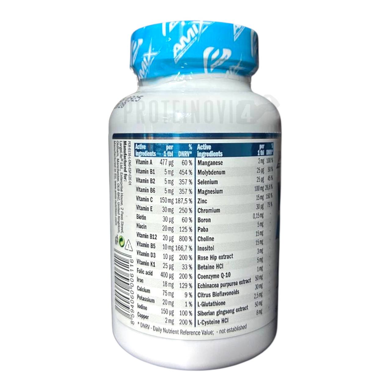Amix Vitamin Max мультивітамін 60таб – унікальний мультикомпонентний комплекс, у складі якого є вітаміни, мінерали, рослинні екстракти та ряд інших нутрієнтів. У виробництві даного продукту використовується природна сировина, що пройшла багатоступеневу очистку, якість якої підтверджено міжнародною сертифікацією. А для зручного безпечного прийому інгредієнти згладжені в невеликі таблетки.