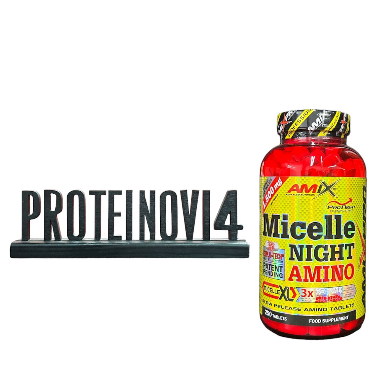 AmixPro Micelle Night Amino 250tab являється добавкою на основі пептидів із повільним вивільненням, ідеальна для прийому перед сном або під час тривалих періодів голодування. Вони засвоюються повільно та стабільно, що сприяє збереженню м’язової маси. Аміно кислоти сприяють нарощуванню м’язової маси, зменшують втому та стимулюють синтез білка.