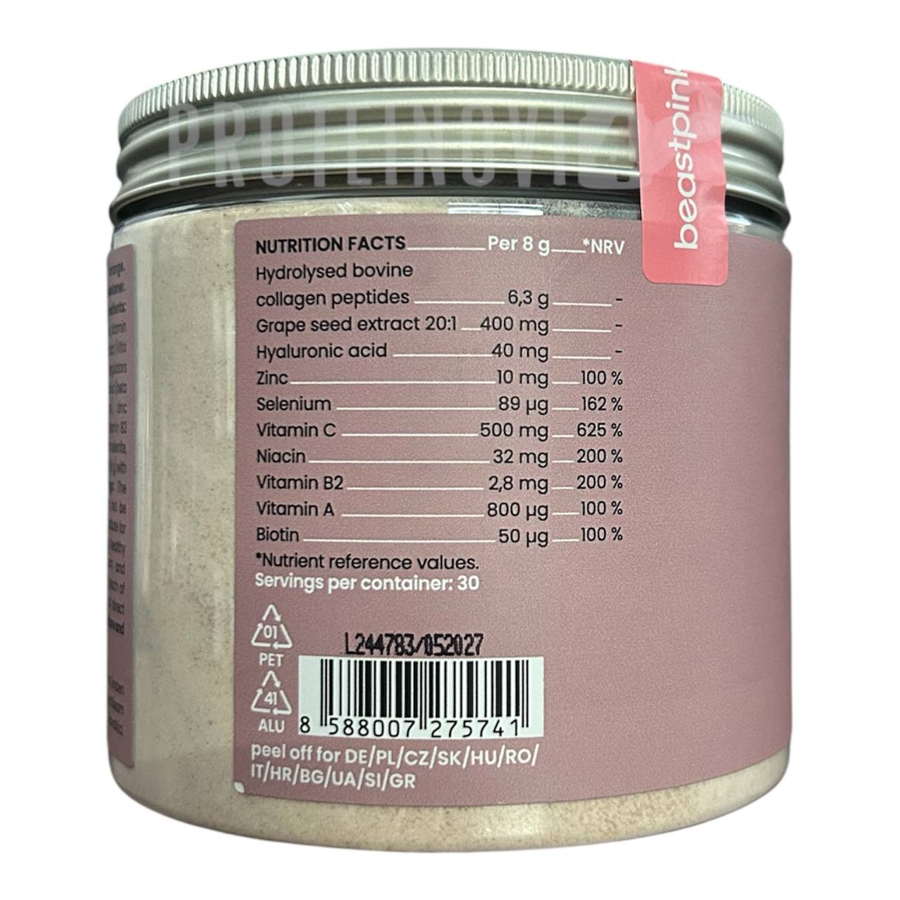 Beast Pink Colla Pink 240gr – це унікальний напій для жіночої краси, не містить цукру та жирів, розроблений спеціально для прекрасної половини людства. Завдяки унікальному поєднанню преміального колагену, гіалуронової кислоти, екстракту виноградних кісточок, вітамінів та мінералів, продукт гарантує здоров’я вашої шкіри, нігтів та волосся. Вітамін C сприятиме правильному синтезу колагену в організмі, а також потурбується про імунну систему. Colla Pink можна спробувати в кількох неперевершених смаках. Завдяки своєму унікальному складу та повному відсутності жирів та цукру він також підходить для дієтичного харчування! Цей комплексний напій для краси та молодості просто зобов’язаний бути в списку ваших фітнес-помічників!