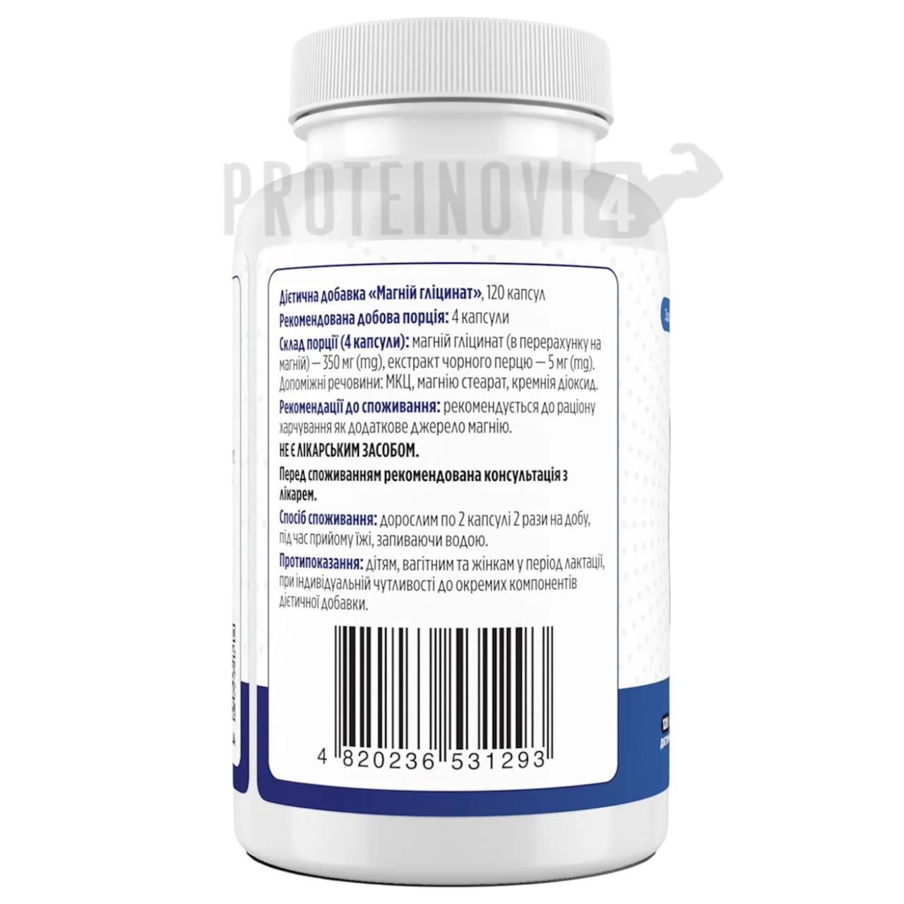 - Висока біодоступність: Гліцинат магнію легко засвоюється організмом, що сприяє покращенню його використання організмом та максимальний результат.