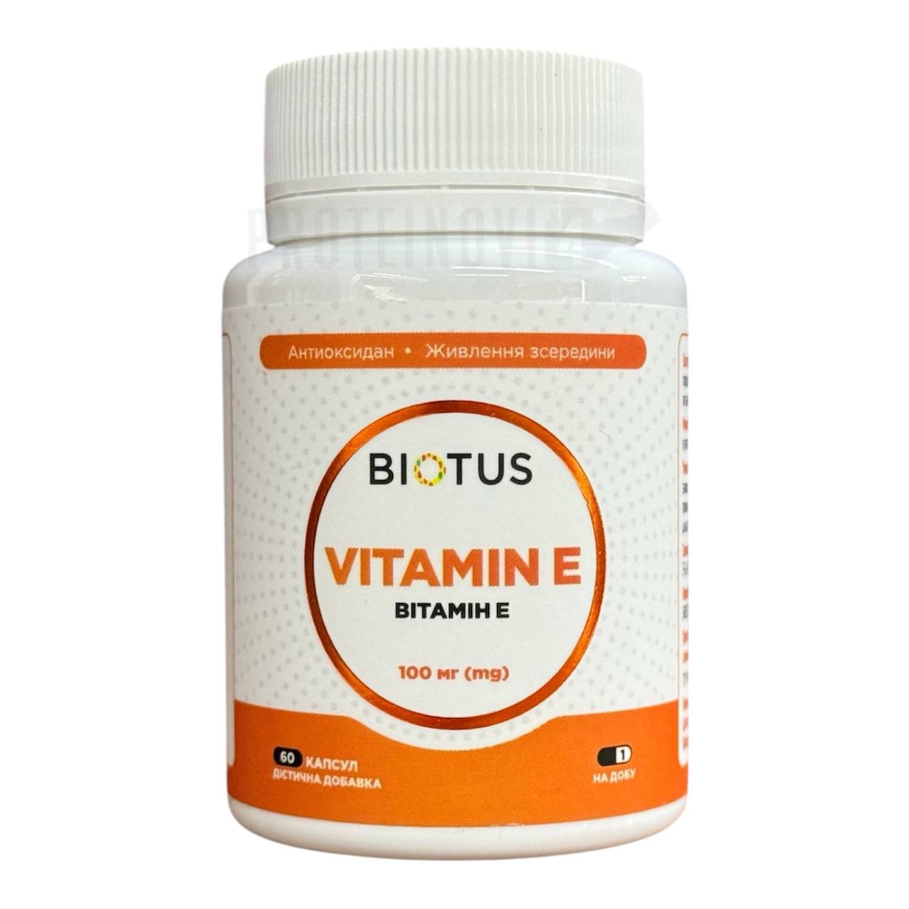BIOTUS Vitamin E 100mg 60Caps – є жиророзчинним вітаміном і потужним антиоксидантом, який підтримує оптимальне функціонування всього організму та захищає клітини від руйнування вільними радикалами.