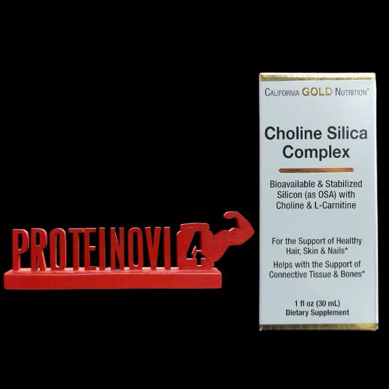 California Gold Nutrition Choline Silica Complex 30ml – холіновий і кремнієвий комплекс для вироблення колагену має біологічно доступну та стабілізовану форму кремнію (ортокремнієву кислоту) у поєднанні з холіном і L-карнітином.