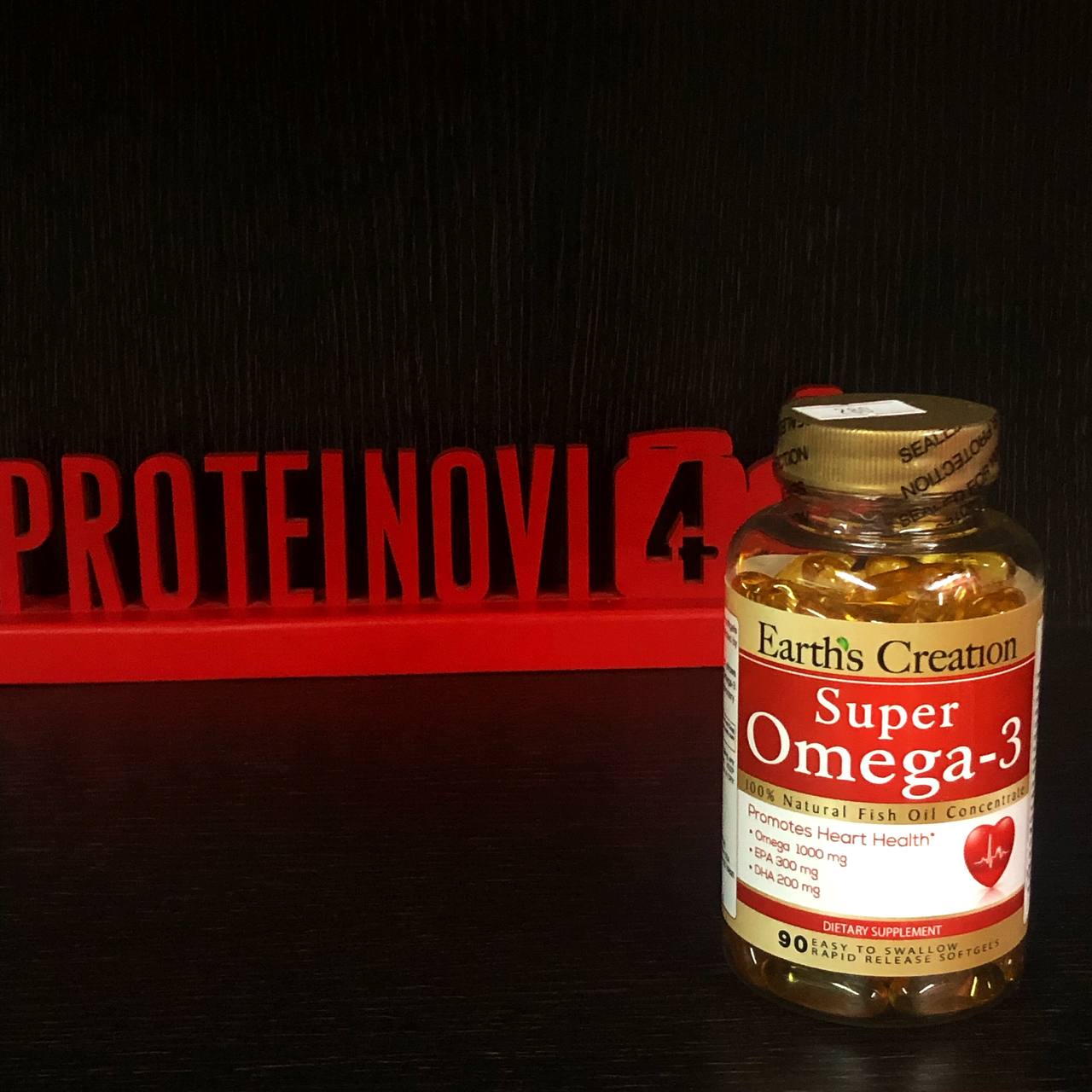 Earths Creation Super Omega-3 1000 mg – 90 caps має маркування «Супер» з причини того, що кожна м’яка желатинова капсула містить високу концентрацію EPA та DHA порівняно зі стандартним риб’ячим жиром. Кожна желатинова капсула містить 300 мг EPA і 200 мг DHA на основі риб’ячого жиру без смаку та запаху. Регулярне вживання жирних кислот омега-3 EPA та DHA покращує стан серцево-судинної системи, також відзначено покращуючий вплив за ішемічної хвороби серця.