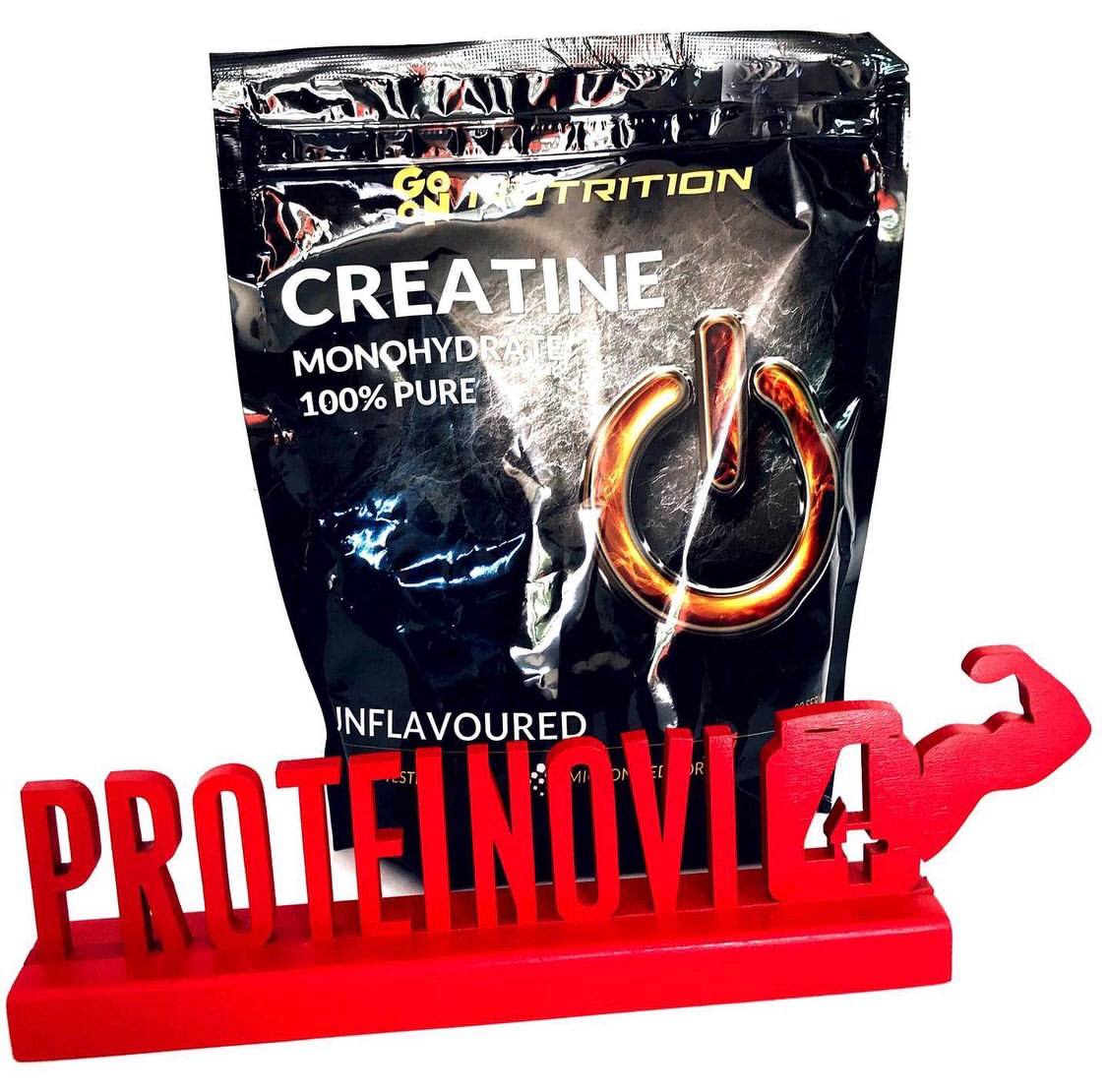 GO ON Creatine 400g – дієтична добавка, що містить чисту форму моногідрату креатину у порошковій формі. Креатин підвищує фізичну продуктивність у випадку послідовних коротких та дуже інтенсивних фізичних вправ. Позитивний ефект настає при споживанні 3 г креатину щодня. Рекомендована добова порція протягом дня: 1 п’ятиграмова порція порошку (1/2 мірної ложки).