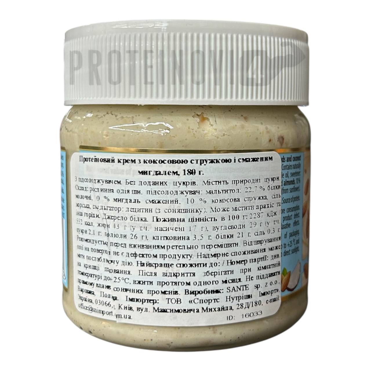 GO ON Protein Coconut and Almond cream 180gr – це крем-десерт з високим вмістом білка. Він містить 20 грам білка на 100 грамів продукту, що робить його чудовим джерелом білка для спортсменів, людей, які ведуть активний спосіб життя, та тих, хто стежить за своїм харчуванням.