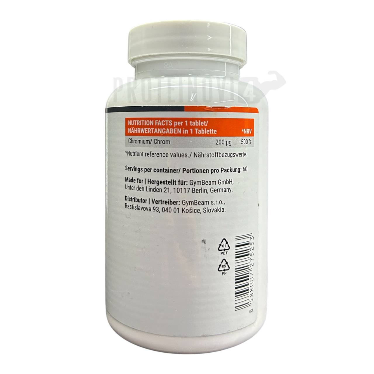 Рекомендації щодо застосування GymBeam Chromium Picolinate 60tab: