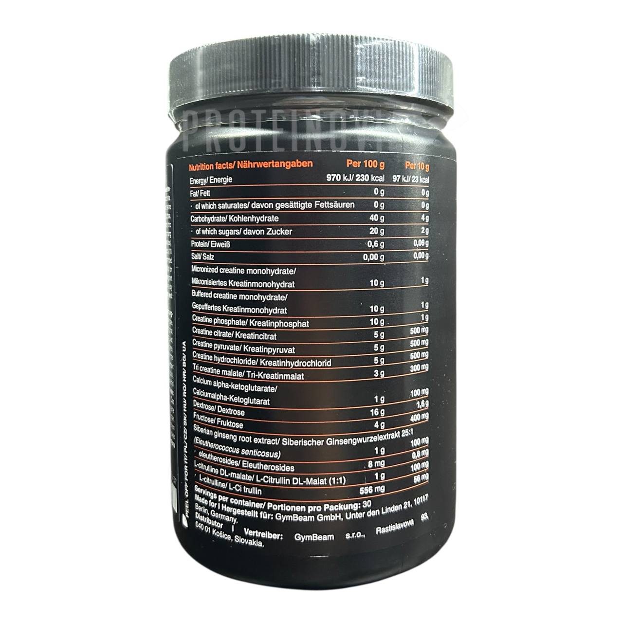 Смак Lemon lime: дегтраза, мальтодекстрин, креатин фосфат, буферизований моногідрат креатина, мікронізований моногідрат креатина, креатин цитрат, креатин пируват, креатин гідрохлорид, ароматизатори, фруктоза, waxy maizetm (модифікований крохмаль), три- креатин малат, лимонна кислота, підсолоджувачі (сахароза), альфа-кетоглютарат кальцію, сибірський женшень (Eleutherococcus Senticosus) порошок кореня, L-цитрулін DL-малат (1:1), барвник (тартазин).