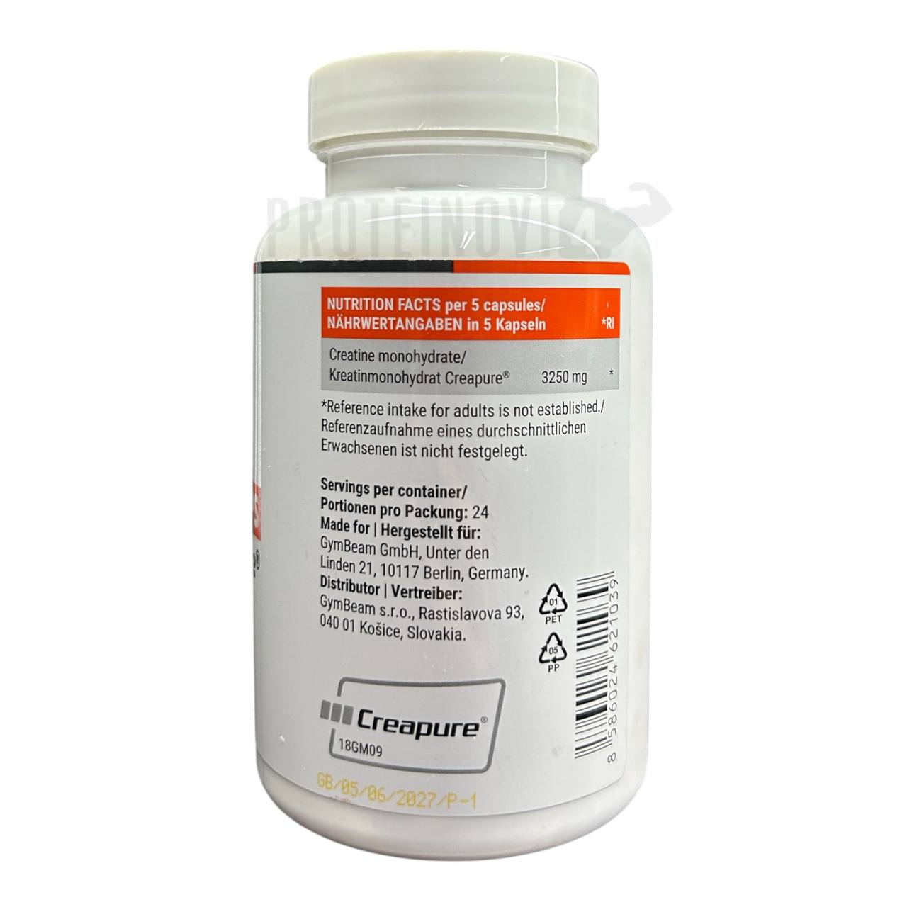 GymBeam Creatine100% Creapure 120caps — це особлива форма моногідрату креатину, обозначенная як Creapure®. Це ефективна добавка, яка підвищує фізичну продуктивність під час коротких послідовних інтервалів високої інтенсивності тренувань. Однак умовою є вживання 3 г продукту на день. Це може допомогти, наприклад, підняти трохи вищу вагу або зробити більше повторень, що, у свою чергу, також може сприяти росту м’язів і сили. Крім того, креатин може допомогти довше бігати, тренуватися більш інтенсивно або покращувати загальні спортивні результати. Креатин у формі капсул – 100% Creapure® підходить для жінок, чоловіків, початківців і професійних спортсменів.