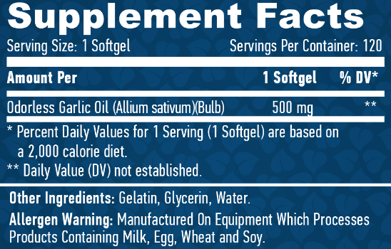 Haya Labs Odorless Garlic 500mg 120caps — це харчова добавка, що містить екстракт часнику з контрольованим запахом у формі м’яких гелів.