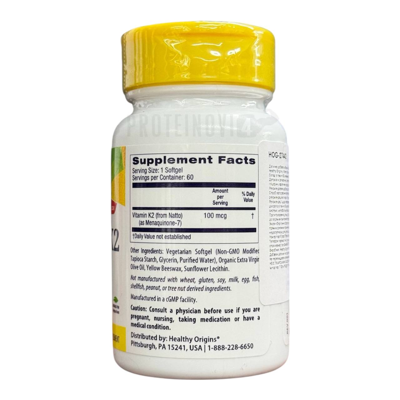 Купити Vitamin K2 MK-7 100mcg від фірми Healthy Origins можна у нас з доставкою по всій Україні! Тільки в Протеїнович еталонна якість, оригінальна продукція та топ ціни по всій Україні.