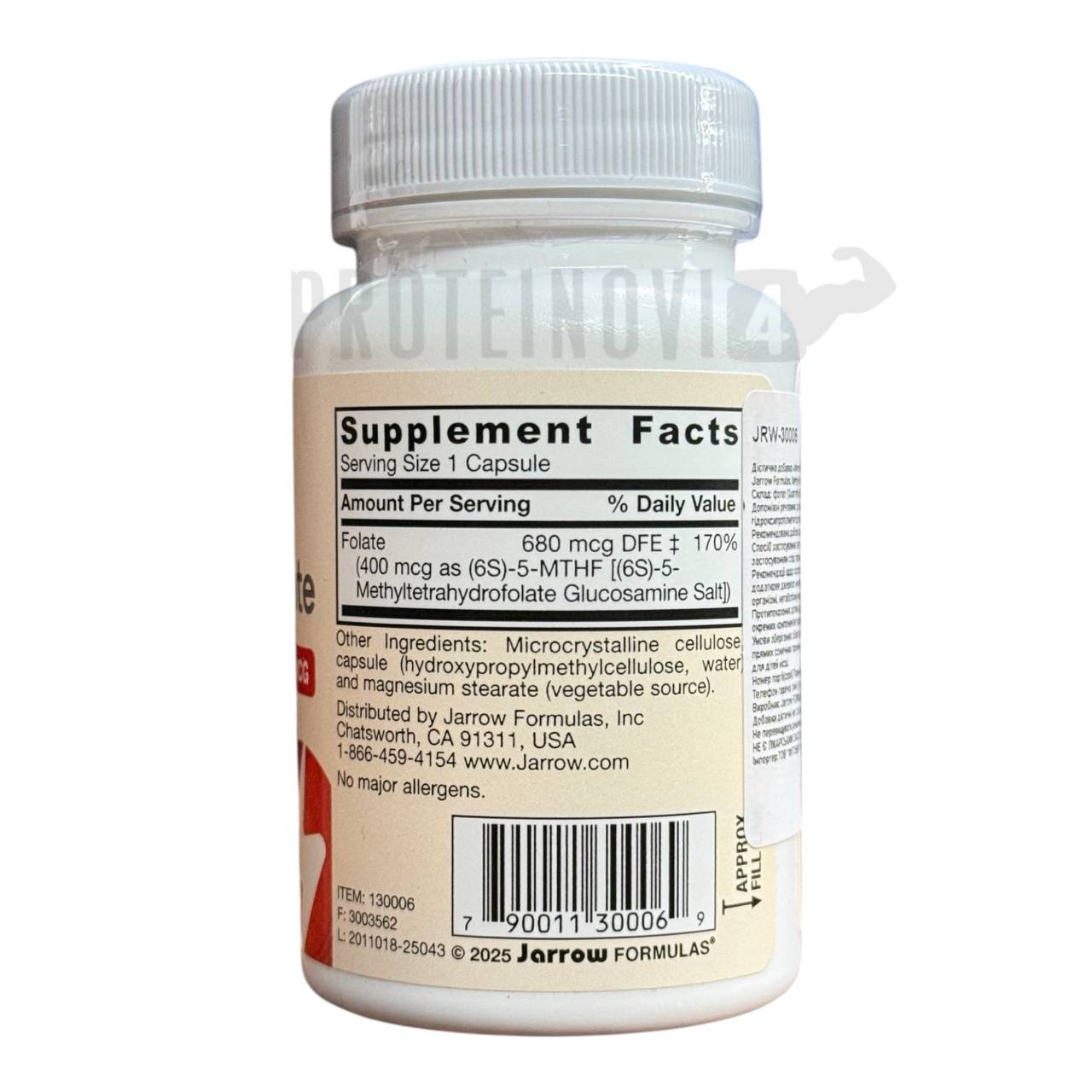 Купити Methyl Folate 400mcg від фірми Jarrow Formulas можна у нас, з доставкою по всій Україні та у магазинах спортивного харчування у Миколаєві! Тільки в Протеїнович еталонна якість, оригінальна продукція та топ ціни по всій Україні!