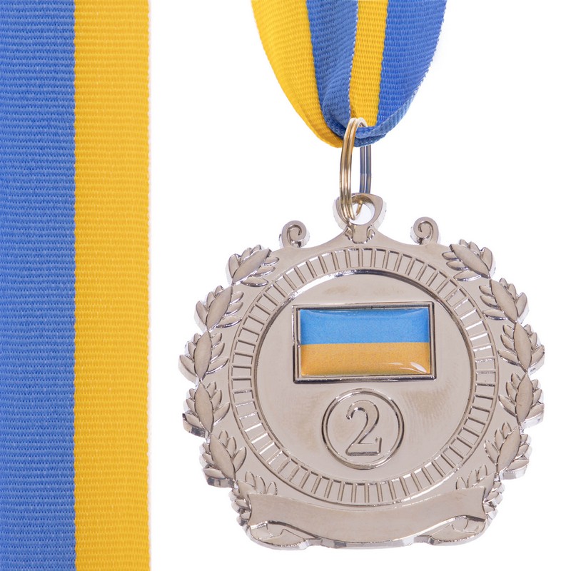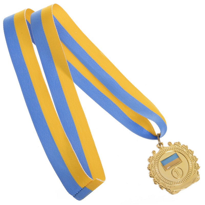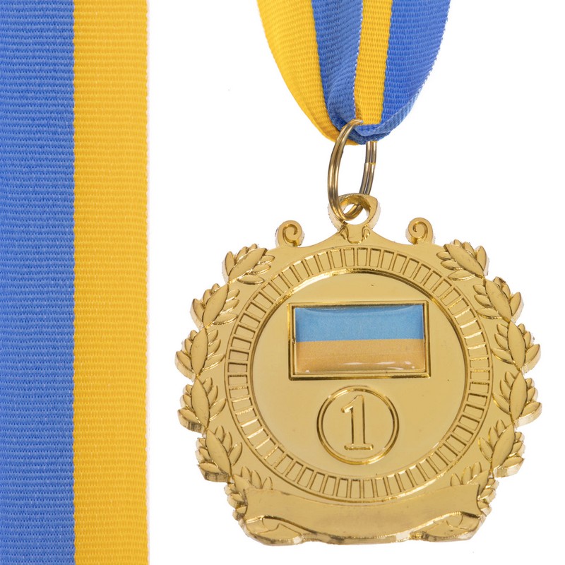 Характеристики Медаль спортивна з стрічкою з українською символікою 1 2 3 місце діаметр 5 см :