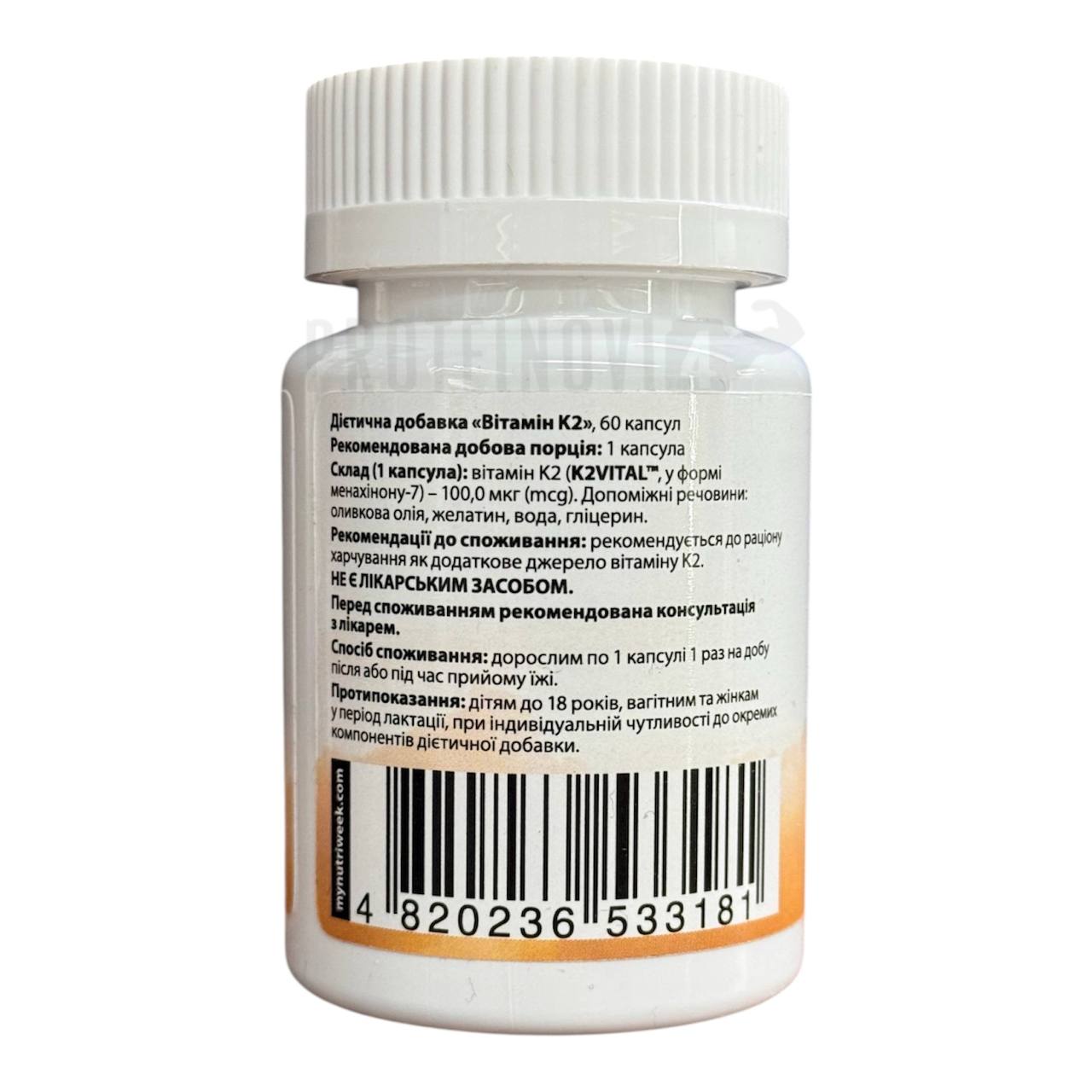 Рекомендації щодо застосування MyNutriWeek Vitamin K2 MK-7 100mcg 60Caps :