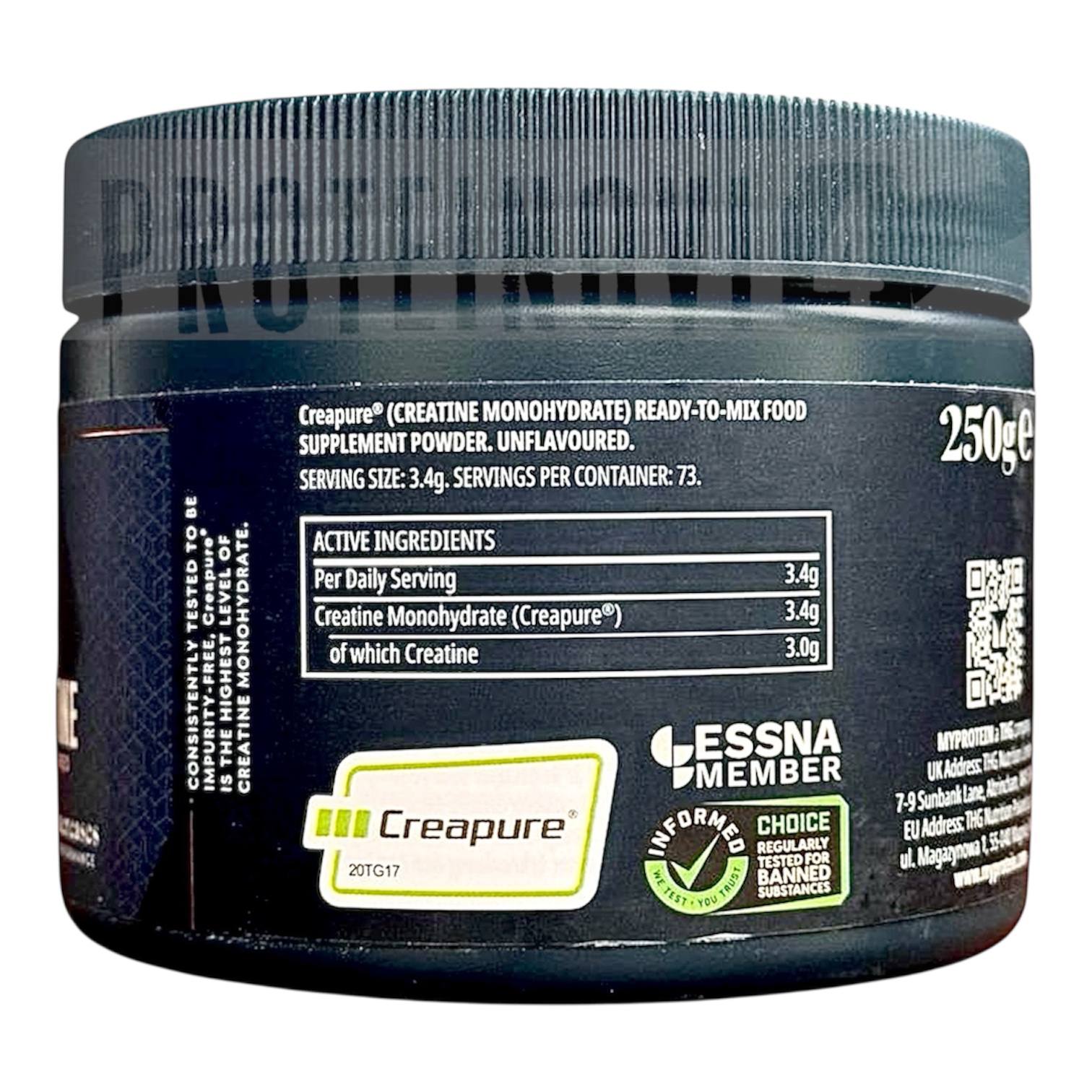 MyProtein Creatine Monohydrate Creapure 250g широко відомий, найчистіший і найкращий рівень мікронізованого моногідрату креатину з наявних на ринку спортивного харчування.