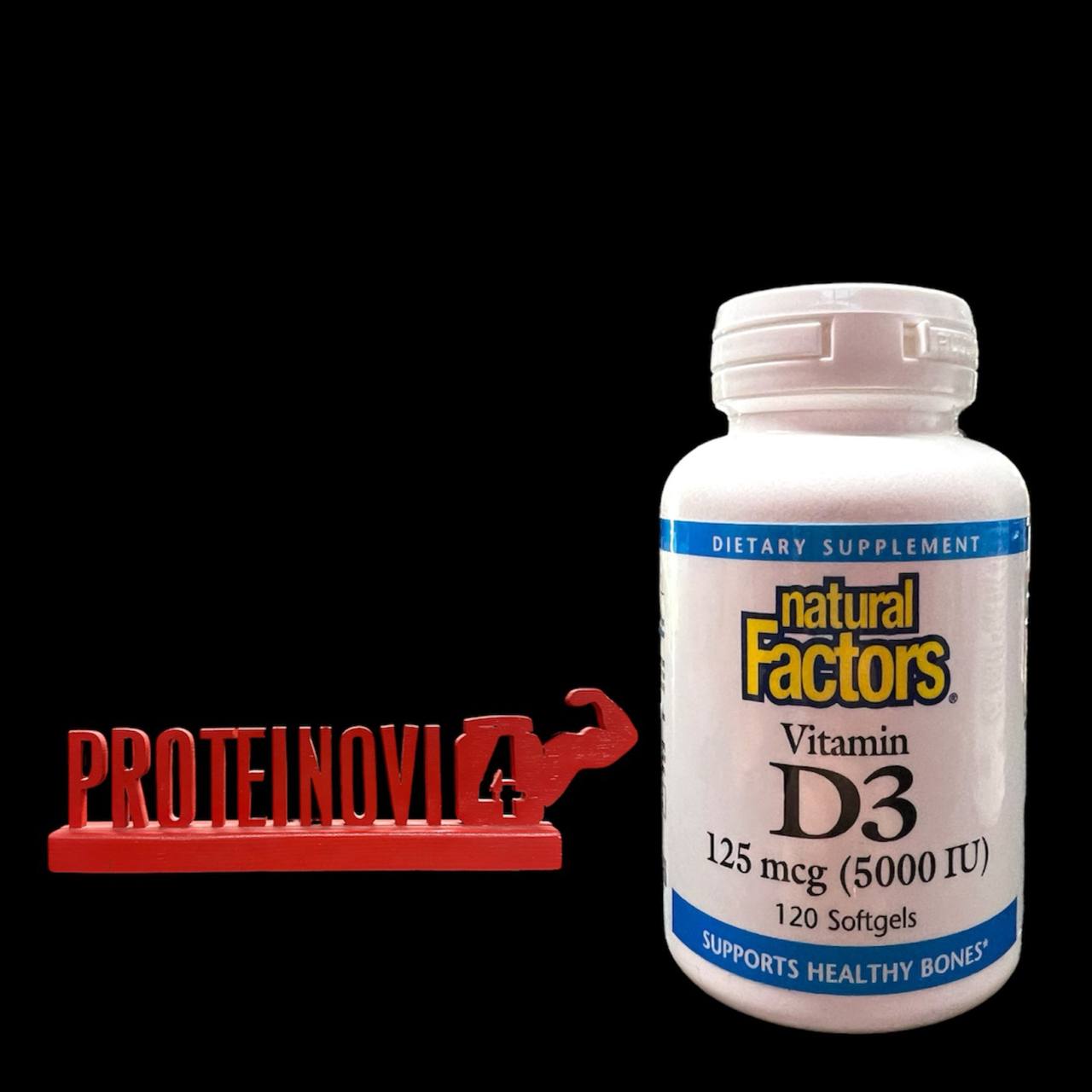 Natural Factors D3 125mcg 5000 IU 120softgels – ключове поживне речовина, яке виробляється в добре засвоюваних гелевих капсулах. Вітамін D3 синтезується організмом від сонячного світла, і лише невелика його кількість може бути отримана з їжі. Зимовий сезон та більшість сонцезахисних кремів заважають організму досягати оптимального рівня вітаміну D. Внаслідок цього додатковий прийом вітаміну D3 стає ще більш необхідним для забезпечення організму достатнім запасом.