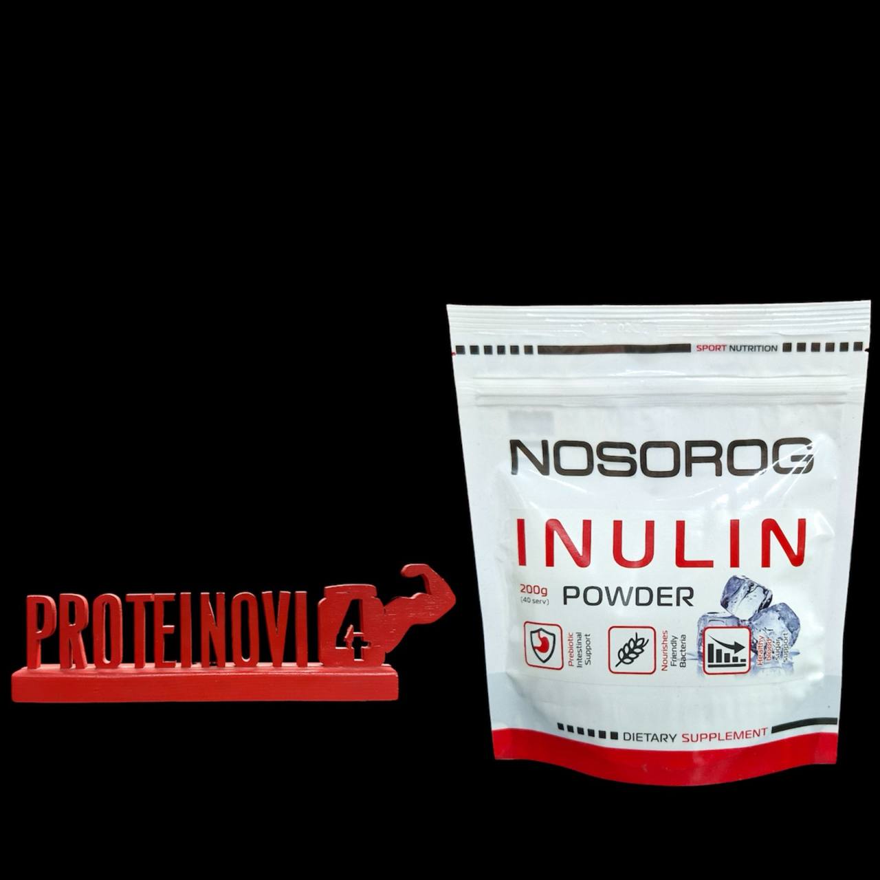Nosorog Inulin 200g – порошкова добавка з інуліном. Відноситься до пребіотиків (повільно перетравлюється, але ферментується та стимулює ріст і життєдіяльність корисних бактерій кишечника). Завдяки цій особливості інулін застосовується за дисбактеріозу, а також для зміцнення імунітету.