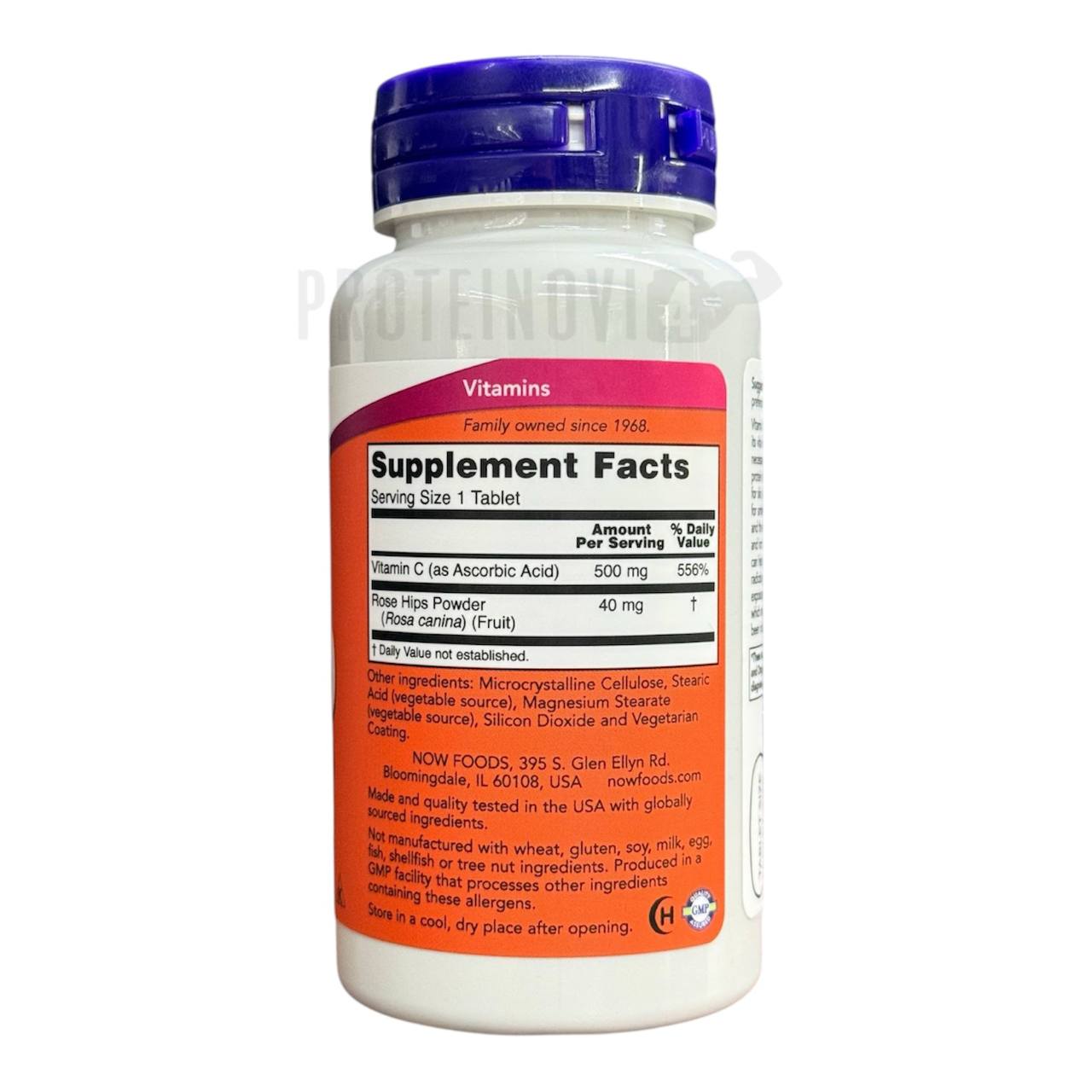 Вітамін C-500 з шипшиною NOW C-500 with Rose Hips 100Tabs – життєво необхідний вітамін. Підтримка імунної системи та надниркових залоз, синтез колагену та гормонів, антиоксидантний захист, зміцнення судин.