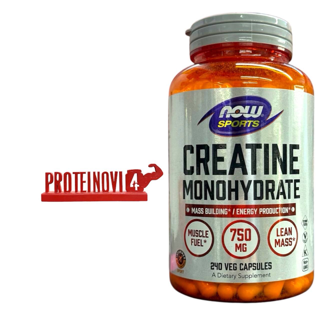 NOW Creatine Monohydrate 240VegCaps – це карбонова азотовмісна кислота, яка виробляється з гліцину, метіоніну та аргініну в підшлунковій залозі, печінці та нирках, і з кров’ю потрапляє у м’язи.