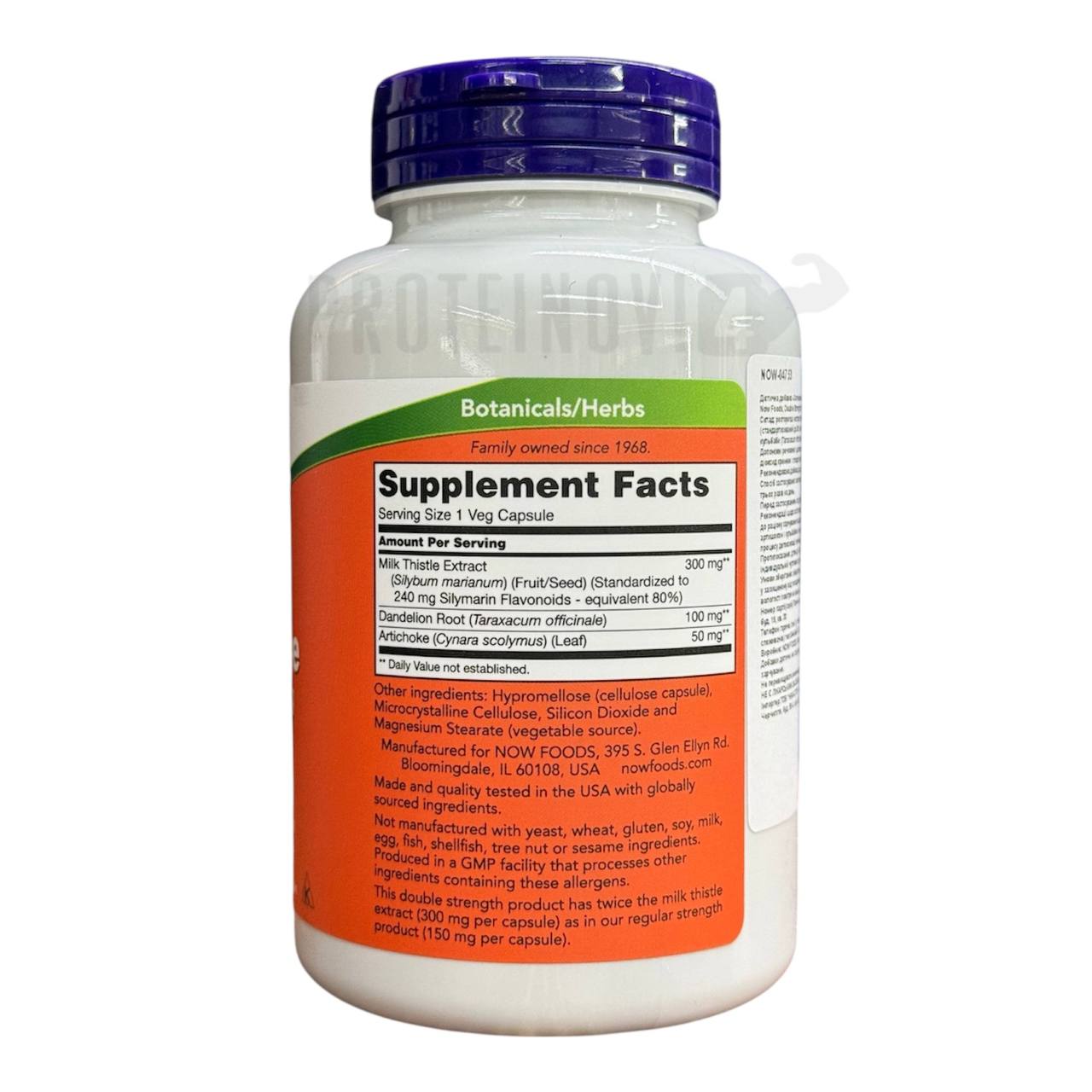 Купити Double Strength Milk Thistle Extract 300mg Silymarin (240mg) від фірми NOW FOODS можна у нас, з доставкою по всій Україні та у магазинах спортивного харчування у Миколаєві! Тільки в Протеїнович еталонна якість, оригінальна продукція та топ ціни по всій Україні!