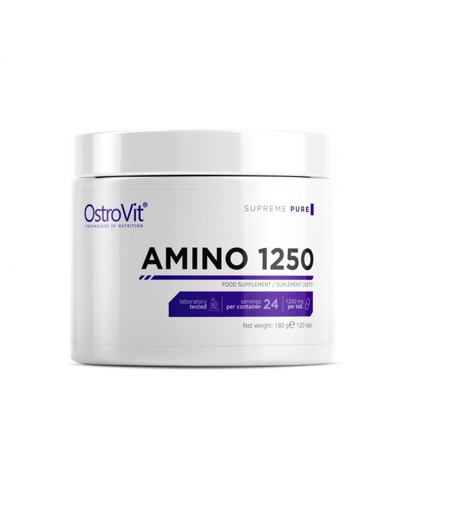 Amino 1250 від Ostrovit, високоякісний амінокислотний комплекс, отриманий шляхом гідролізу сироваткового білка. Amino 1250 складаються з 8 НЕЗАМІНИМИХ амінокислот (лейцин, ізолейцин, валін, аргінін, гістидин, треонін, метіонін, фенілаланін). Щоб покрити денну норму незамінних амінокислот, ваш раціон має бути збалансований і різноманітний, що практично нереально і дуже витратно. Вплив амінокислот на організм неможливо оцінити, адже це невід’ємна частина функціонування людини, а особливо спортсмена, ця група людей особливо потребує додаткового прийому Amino 1250.