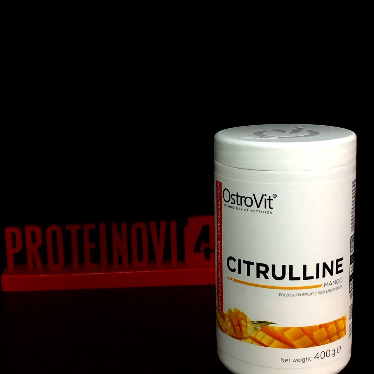 Ostrovit Citrulline 400gr – дієтична добавка, в основі якої цитрулліна малату з таурином і вітаміном B6. Безсумнівно одним з важливих факторів є підвищення продуктивності, регенерації та покращення кровотоку в м’язах при інтенсивних заняттях спортом.