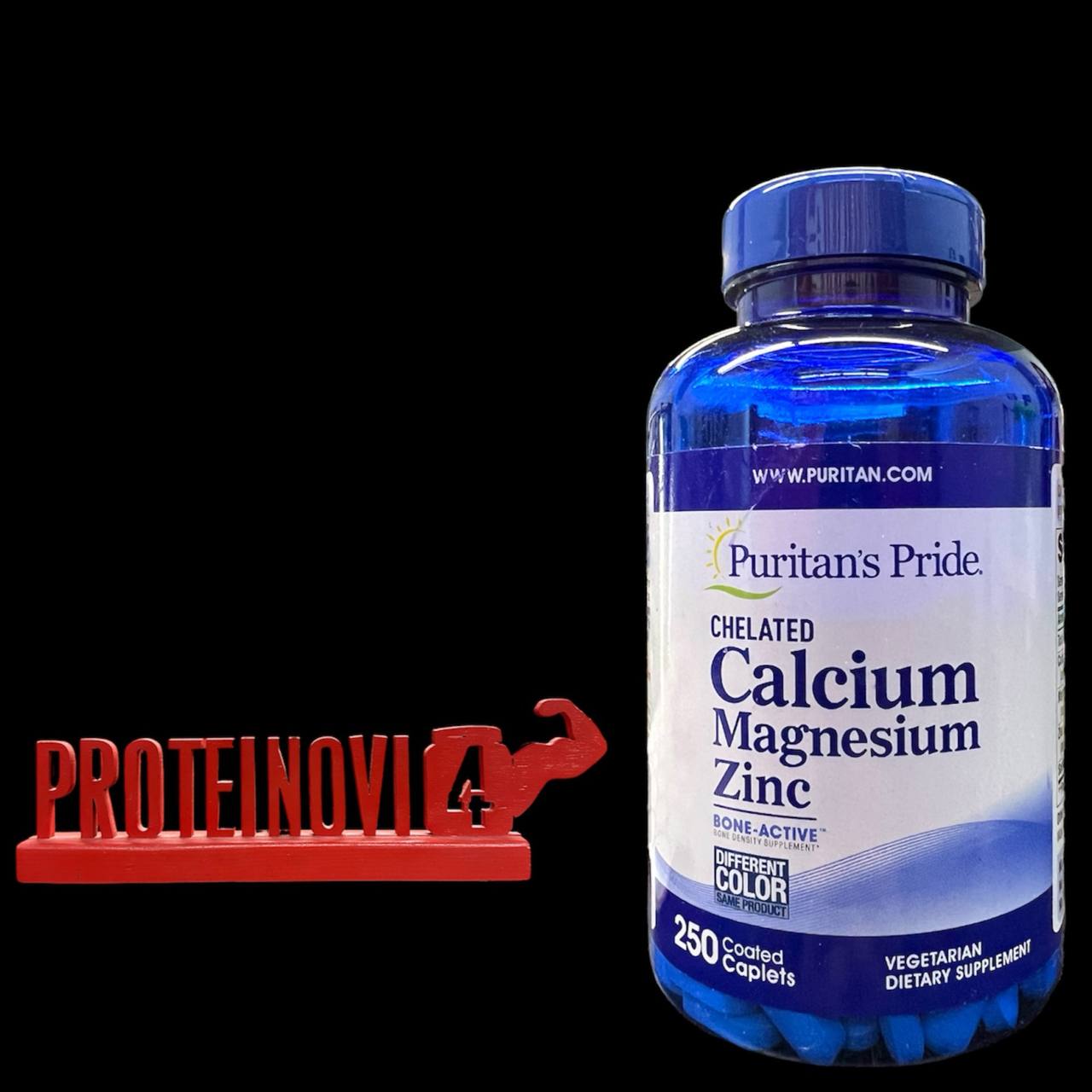 Puritans Pride Chelated Calcium Magnesium Zinc 250tab – це високоякісний мінеральний комплекс на основі цинку, магнію та кальцію – важливіших мінералів, які забезпечують міцність та здоров’я кісток.