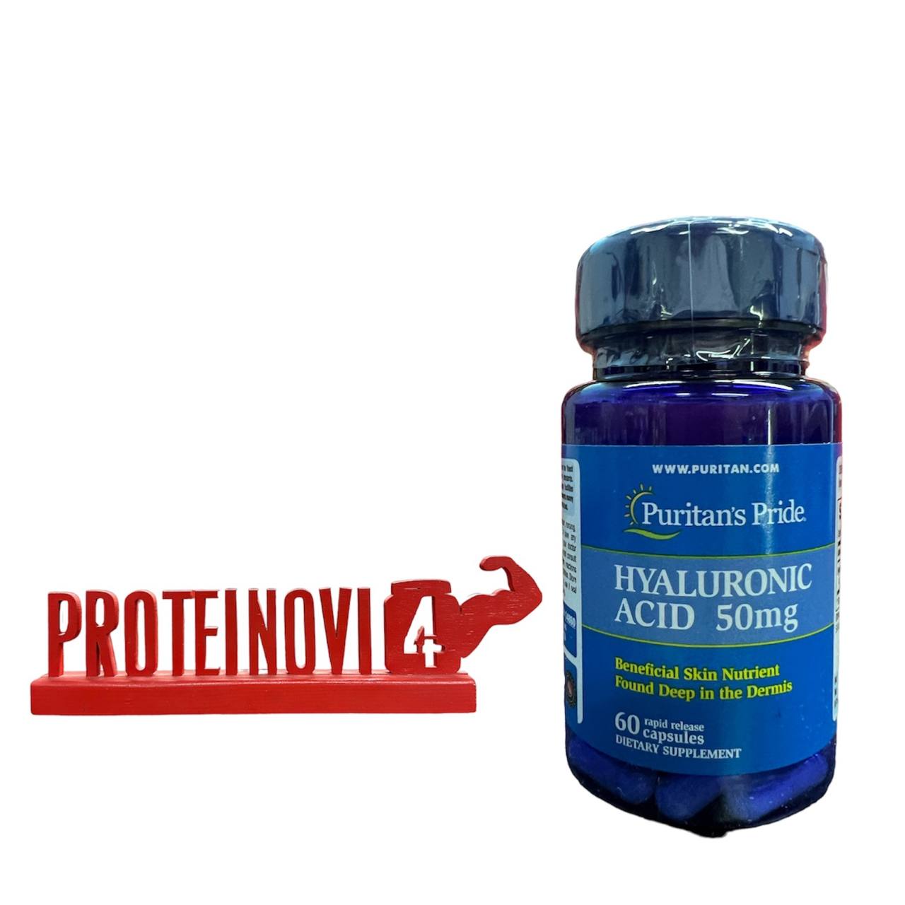 Puritans Pride Гіалуронова кислота 50 мг – 60 капсул – це джерело гіалуронової кислоти у зручній дозуванні для підтримки здоров’я та еластичності суглобів і хрящів, уповільнення старіння та покращення пружності шкіри.