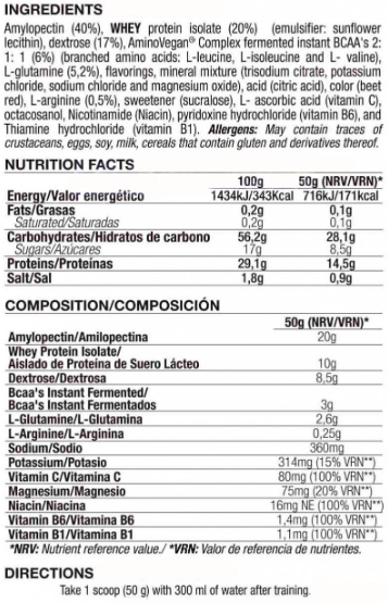 - Збагачений BCAA, глютаміном, аргініном, вітамінами та мінералами.