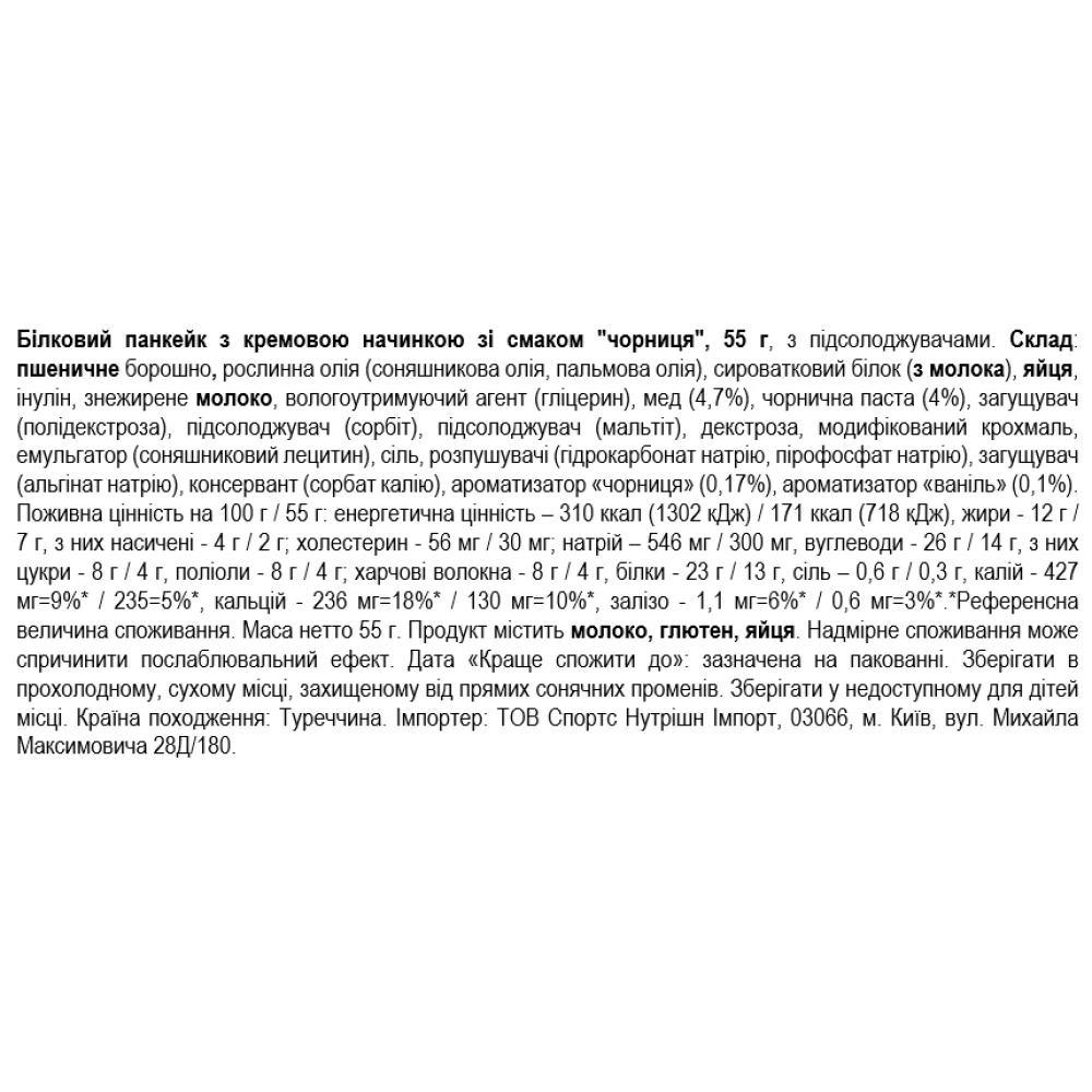 Рекомендації щодо споживання Smarter Snacks Protein Pancake Blueberry Cream filling 55g :