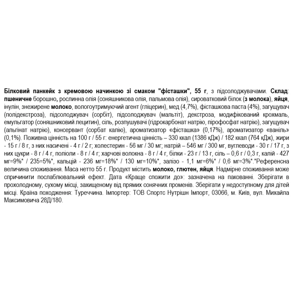 Рекомендації щодо споживання Smarter Snacks Protein Pancake Pistachio Cream filling 55g: