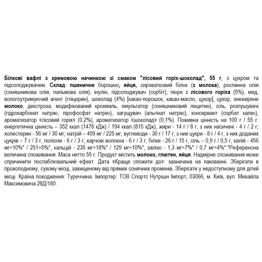 Smarter Snacks Protein Waffle with Hazelnut Chocolate Cream filling 55g — це готовий до споживання продукт у форматі вафлі з продуманим поєднанням макронутрієнтів. Він призначений для включення до різноманітного щоденного раціону та може використовуватися як зручний варіант перекусу протягом дня.