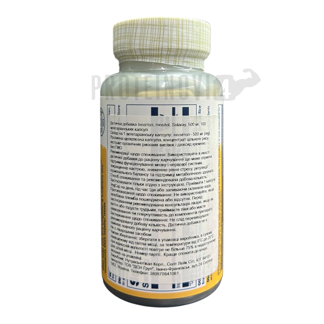 Solaray Inositol 500mg 100VegCaps – харчова добавка для підтримки та поліпшення повсякденного здоров’я.