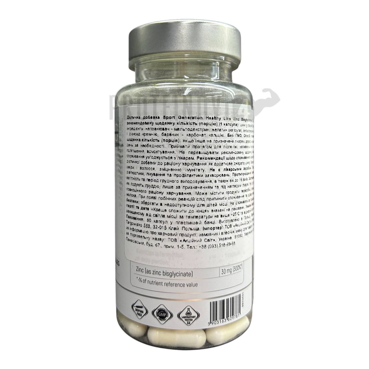 Рекомендації щодо застосування Sport Generation Healthy Line Zinc Bisglycinate 60Caps: