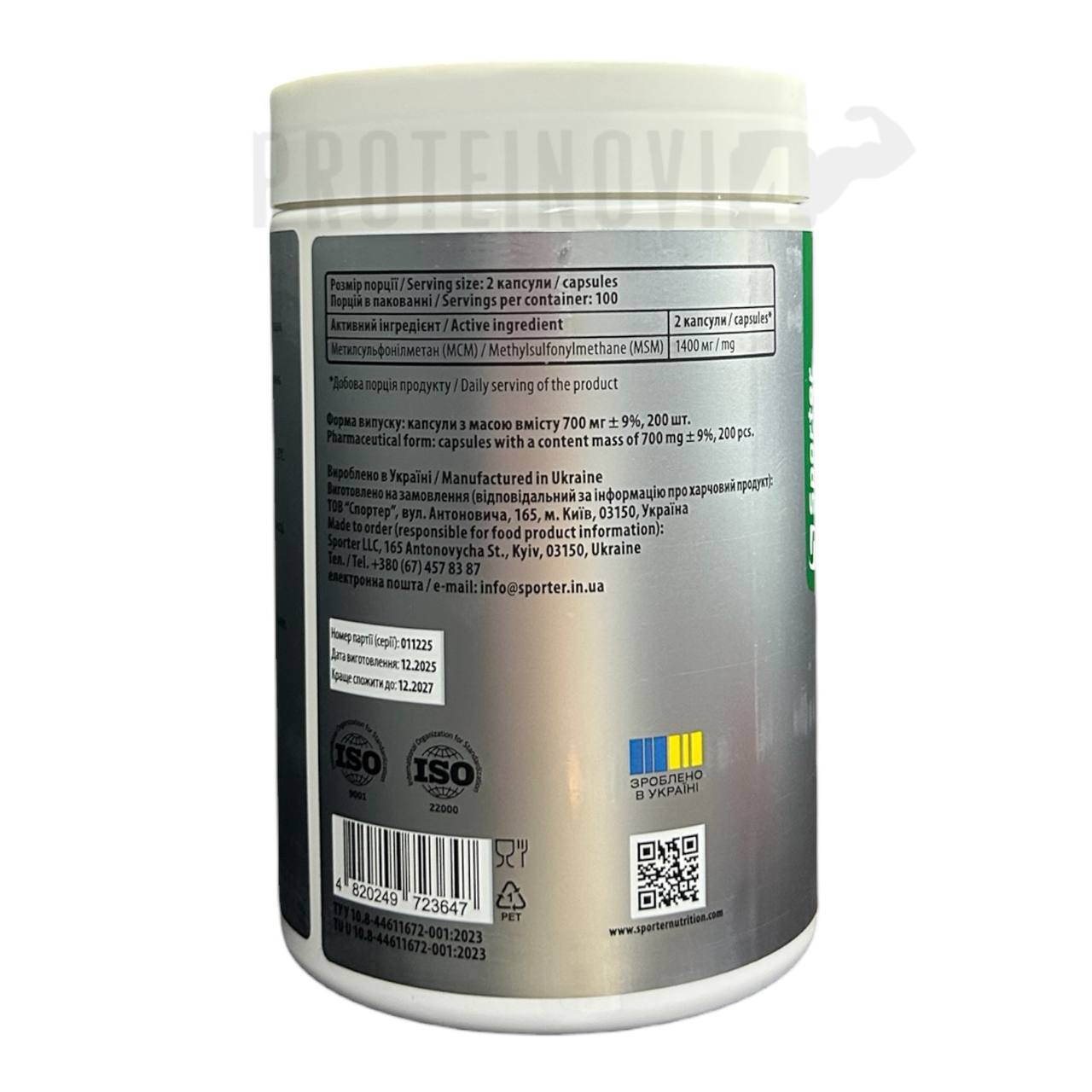 Рекомендації щодо застосування Sporter MSM 700mg 200caps: