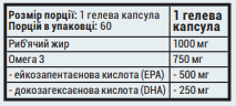 Sporter Omega 3 концентрація 75% 60капсул – дієтична добавка, джерело Омега 3, ейкозопентаєнова (EPA) 500 мг та докозагексаєнова (DHA) 250мг кислот.