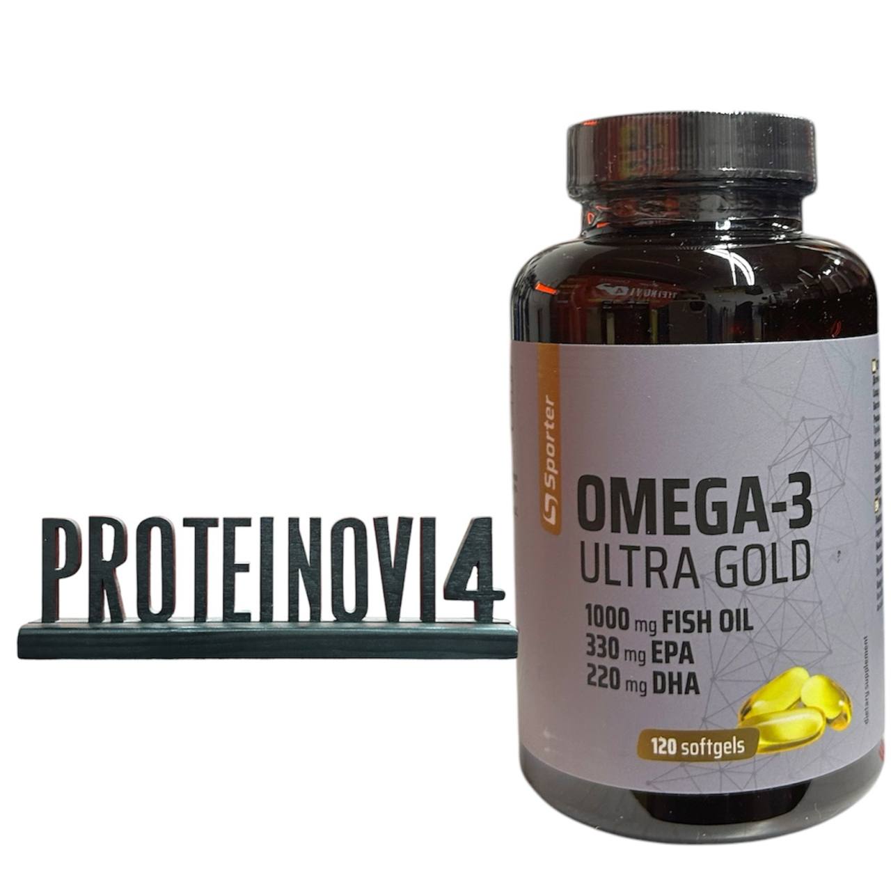 Sporter Omega 3 Ultra Gold 120 caps – джерело натуральних омега-3 жирних кислот. Ця біодобавка має високий вміст ейкозапентаєнової (EPA) – 330 мг та докозагексаєнової (DHA) – 220 мг кислот і збагачена Вітаміном Е. У нашому звичному раціоні EPA та DHA присутні лише в мінімальній кількості, тому надзвичайно важливо черпати їх з біологічно активних добавок. Джерелом цих кислот є риба. Ці незамінні поліненасичені жирні кислоти відіграють значну роль у роботі організму та дуже потрібні для його повноцінної роботи. Достатня кількість цих жирних кислот покращує і зовнішній вигляд, і всі внутрішні обмінні процеси. Ця харчова добавка допомагає стабілізувати гормональний фон та нормалізує рівень холестерину. Регулярний прийом омега-3 жирних кислот є прекрасною профілактикою серцево-судинних захворювань, знижують ризик виникнення та рецидивів онкологічних захворювань, покращують фізичні та розумові показники і є засобом профілактики захворювань.