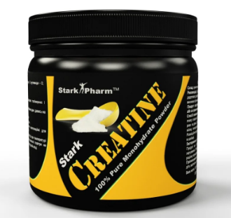 Creatine Stark Pharm — це спортивний препарат, основним інгредієнтом якого є чистий креатин моногідрат. Він збільшує м’язову витривалість під час тренування — активність спортсмена під час фізичного навантаження зростає в рази. Атлет відчує зміни в тернувальному процесі вже після чотирьох днів вживання продукту.
